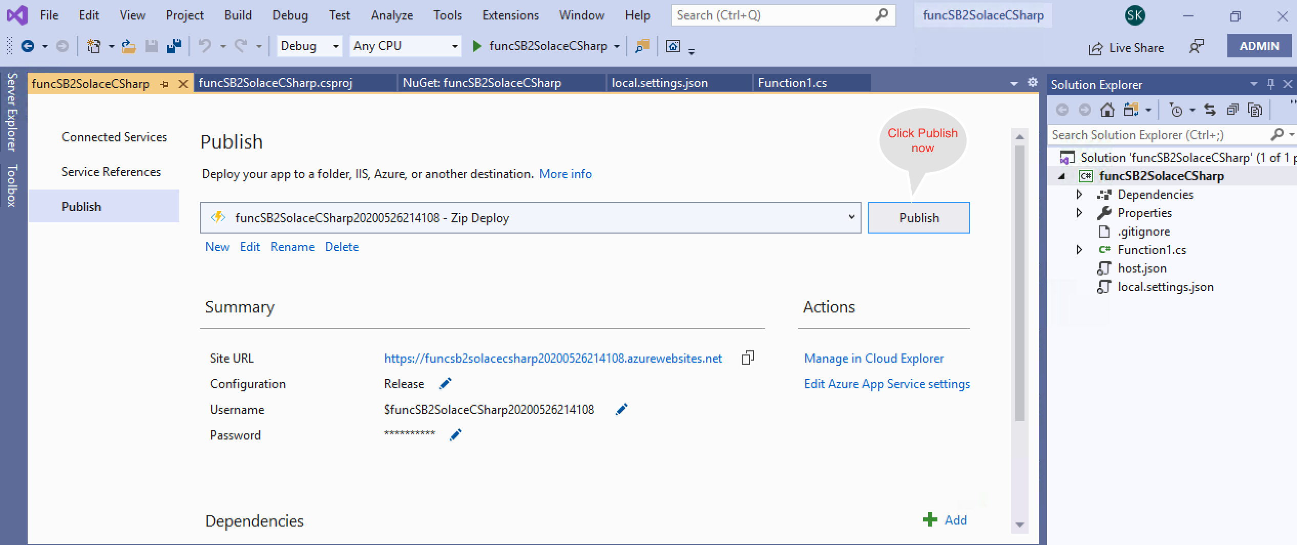 Azure allows you to use multiple programming languages and APIs. However, for this codelab, I will walk you through usage of C# using Solace C#API and REST .