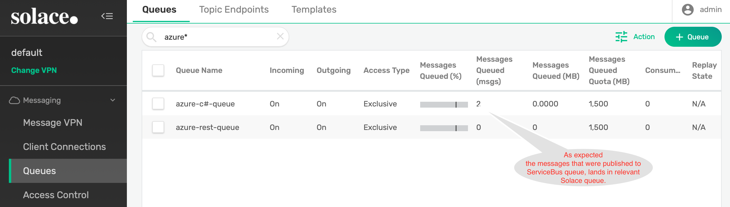 solace(configure/message-vpn/my-azure-queue )# end