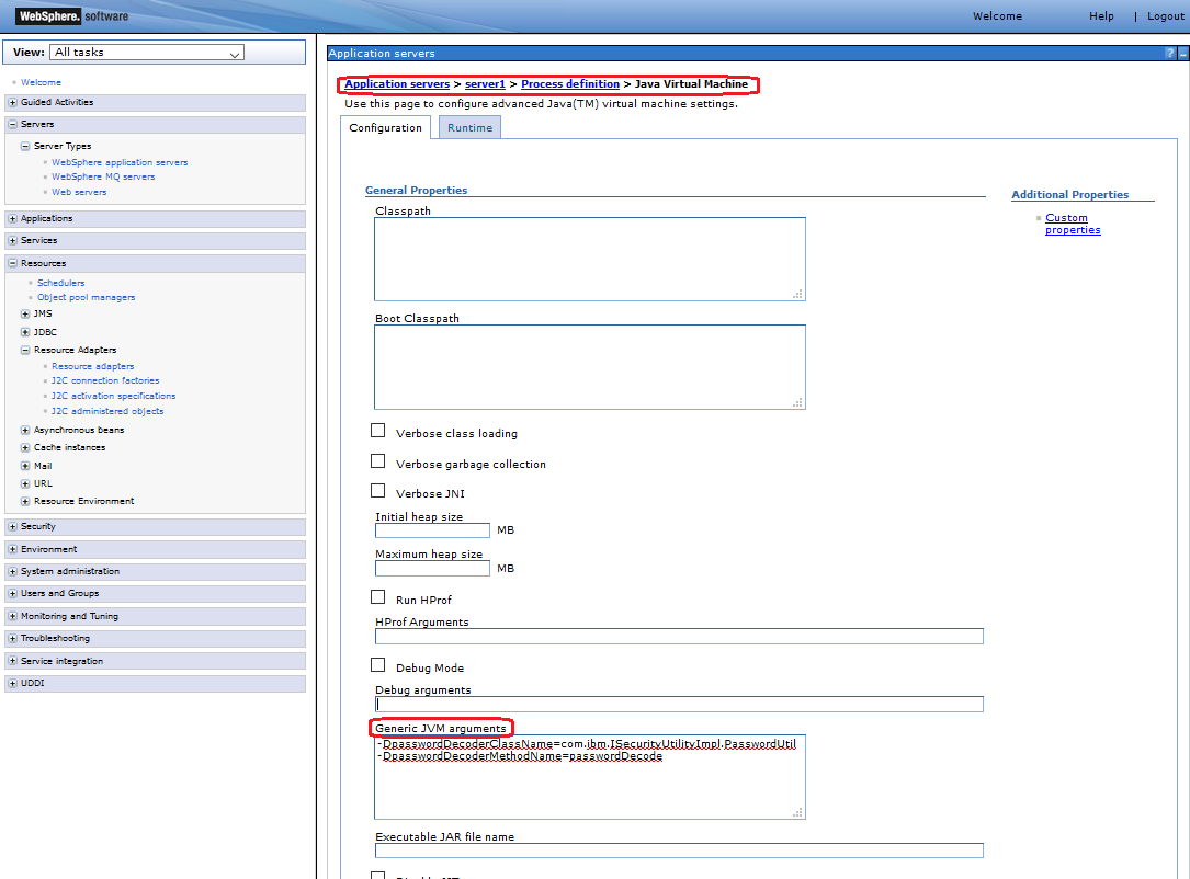 The required SSL parameters include modifications to the URL scheme of ‘ConnectionURL' (from tcp to tcps), and setting additional SSL attributes through the custom property ‘ExtendedProps'. The following sections describe the required changes in more detail.